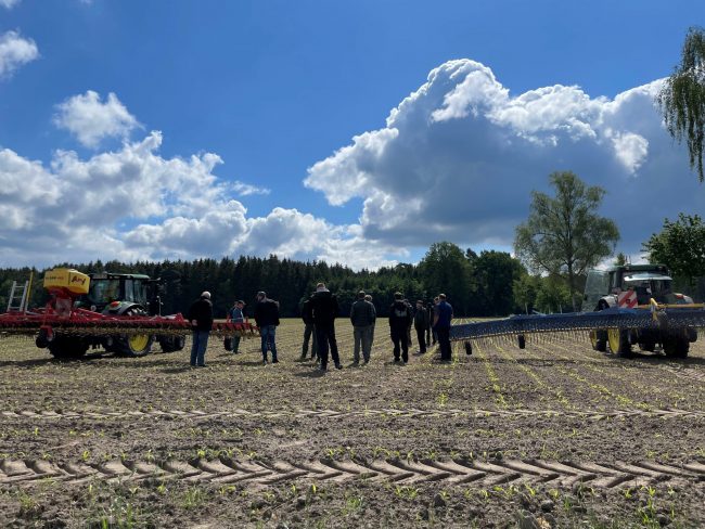 „Man darf nicht bange sein“ FINKA-Feldtag zum Einsatz des Striegels in Theorie und Praxis Frielingen (ccp). „Man darf beim Striegeln nicht bange sein.“ Jan Meyerhoff, der diese Erfahrung in 25-jähriger Tätigkeit als Biobauer gesammelt hat, stellte jetzt seinen Acker zur Verfügung, um die neuesten Erkenntnisse der Striegeltechnik einem breiten Publikum vorzustellen. Organisiert wurde der Feldtag…