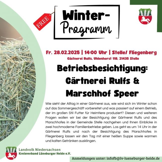 Tour de Flur- moderne Landwirtschaft mit dem Fahrrad erleben! Am So. 1.6.2025 ist es von 11 bis 17 Uhr wieder soweit- die beliebte Veranstaltung für Groß und Klein findet in Rethem und Umgebung (Rethem Moor, Hedern, Kirchwahlingen, Gr. Häuslingen) statt. Mit dem Rad können auf einer ausgewiesenen Fahrradstrecke 8 landw. Betriebe angefahren werden, die sich…