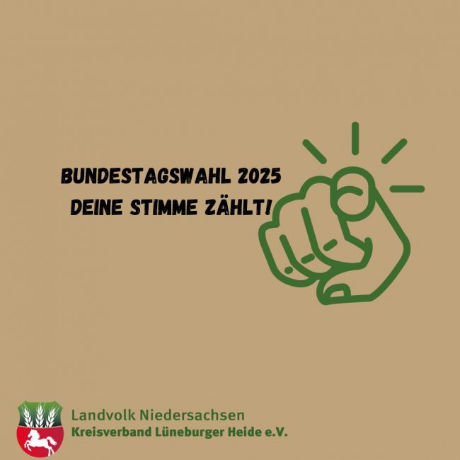 Das Landvolk Niedersachsen und der Bund der Deutschen Landwirtschaft haben in folgenden Videos Forderungen an die Politik gestellt und rufen zur Wahlbeteiligung auf! Alle Videos mit den Botschaften finden sich hier Die DBV-Kernanliegen zur Bundestagswahl 2025 finden Sie hier: www.bauernverband.de/dbv-positionen/positionen-beschluesse/position/dbv-kernanliegen-bundestagswahl-2025