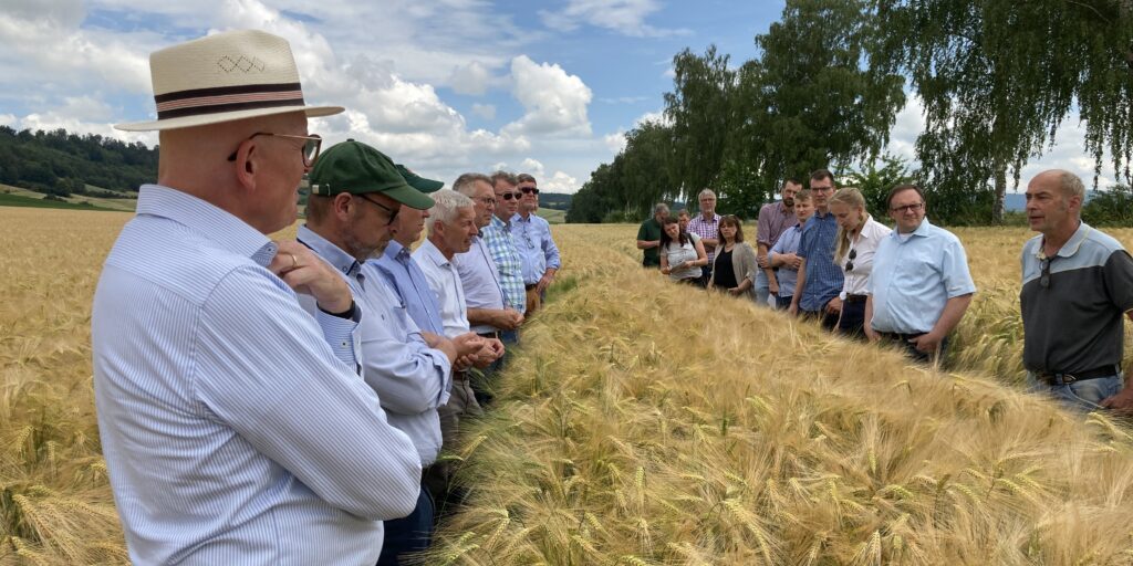 Ein Vorteil des anhaltend trockenen Wetters sei ein verringerter Schädlings- und Blattkrankheits druck, sodass die Landwirte weniger Pflanzenschutzmittel eingesetzt haben. „Das ist gut, aber wir müssen die Möglichkeit haben, unsere Pflanzen zu schützen und zu düngen, damit wir gute Qualitäten mit hohem Proteingehalt erzeugen können“, verweist Karl-Friedrich Meyer bei der anschließenden Podiumsdiskussion mit Marktvertretern auf die von der EU geplante Reduzierung des Einsatzes von Stickstoffdünger und Pflanzenschutzmitteln (SUR). In seinem Heimatkreis Hameln-Pyrmont wären 65 Prozent der landwirtschaftlichen Flächen von einem Ausbringungsverbot betroffen, im Nachbarlandkreis Holzminden sogar 97 Prozent – sollte die SUR in der aktuellen Form in Kraft treten. Als wichtige Möglichkeit in Zukunft Pflanzenschutzmittel einzusparen, sieht der Ausschussvorsitzende den Einsatz moderner Züchtungsmethoden wie Crispr-Cas