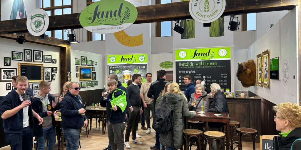 Den Besuchern der Niedersachsenhalle wird vor allem der neue Stand von „Echt Grün – Eure Landwirte“ sofort ins Auge fallen. Die Imageinitiative der niedersächsischen Landwirtschaft tritt mit neuem Standkonzept auf – und ist unter dem Niedersachsen-Schriftzug unter den Buchstaben C und H als Stand 114 zu finden. „Nach mehr als zwei Jahren ohne Präsenzmöglichkeit auf der Internationalen Grünen Woche sind wir froh, dass wir mit unserer Imageinitiative ‚Echt grün – Eure Landwirte‘ wieder vor Ort sind. Mit einem neuen Konzept an einem neuen Standort zeigen wir verschiedene Maßnahmen aus unserer Kampagnenarbeit digital und analog“, erklärt Andre Brunemund, Geschäftsführer des „Eure Landwirte – echt grün e.V.“ Der Messestand mit dem Motto „Die Landwirtschaft“ verbindet in uriger Kneipenatmosphäre Tradition und Moderne und lädt mit regionalem Bier von Schnuckenbräu aus Walsrode zum gemütlichen Verweilen ein. „Von 10 bis 18 Uhr findet bei uns täglich der Dialog zwischen Landwirten und Verbrauchern und auch der Fachaustausch der Landwirte untereinander bzw. mit Experten statt. Dass dem Publikum unser Stand gefällt, sieht man an den hohen Besucherzahlen und der langen Verweildauer der Gäste“, zeigt sich Brunemund sichtlich zufrieden, dass das neue Standkonzept aufzugehen scheint.